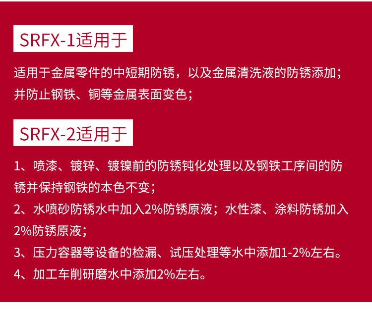 洲聯提供兩種型號的防銹劑,即SRFX-1SRFX-2